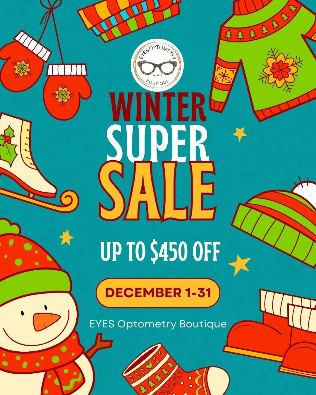 We have too many frames in stock! Help us make room for new eyewear collections coming in, and you'll save a little extra during the holiday season!