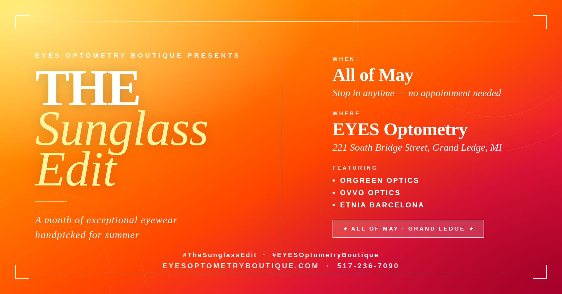 May is officially sunglass season at EYES Optometry Boutique - and we're celebrating all month long.